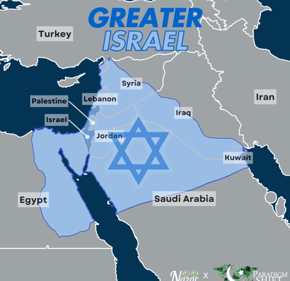 The "Greater Israel" concept envisions an Israeli state extending beyond its current borders, potentially encompassing territories from the Nile River in Egypt to the Euphrates River in Iraq.